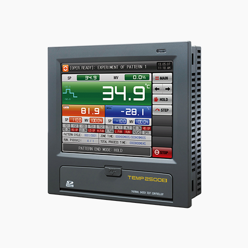 열충격 시험 조절계로서 고화질 TFT-LCD 터치 화면과 레코딩 기능을 지원하며 댐퍼 & 엘리베이터 방식을 지원하는 제품입니다.